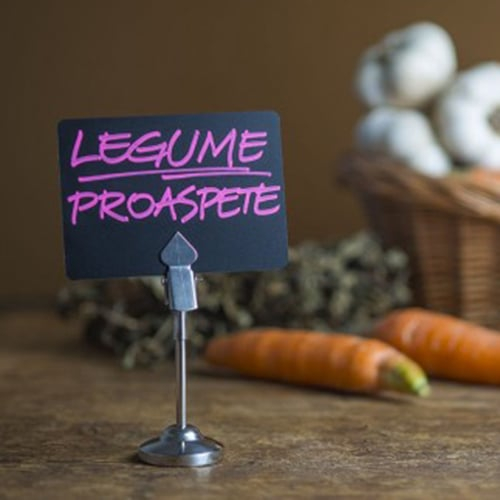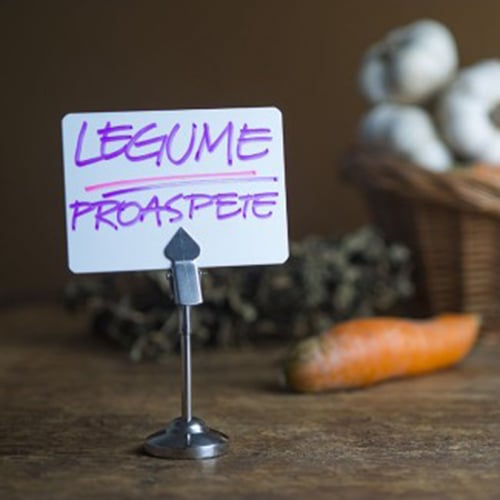 Suporturile din inox pentru etichete se pot așeza lângă produse,