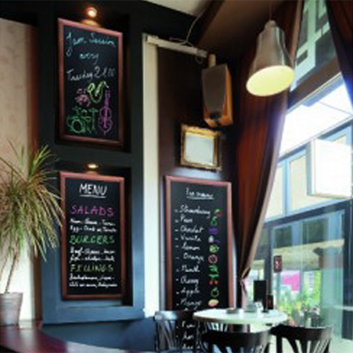De la un restaurant traditional la un club de noapte modern, bar sau magazin de vanzare cu amanuntul, exista intotdeauna un model care se potriveste. Suprafata de scriere neagra este simplu de sters si este rezistenta la UV, zgarieturi, pete sau decolorare. Rama din lemn are un design reversibil, iar lemnul dur lacuit este rezistent la apa si intemperii. Carligele de agatat sunt incluse in pret. Pentru un bun rezultat de comunicare durabila si impresionanta, utilizati markere cu creta lichida Securit®.